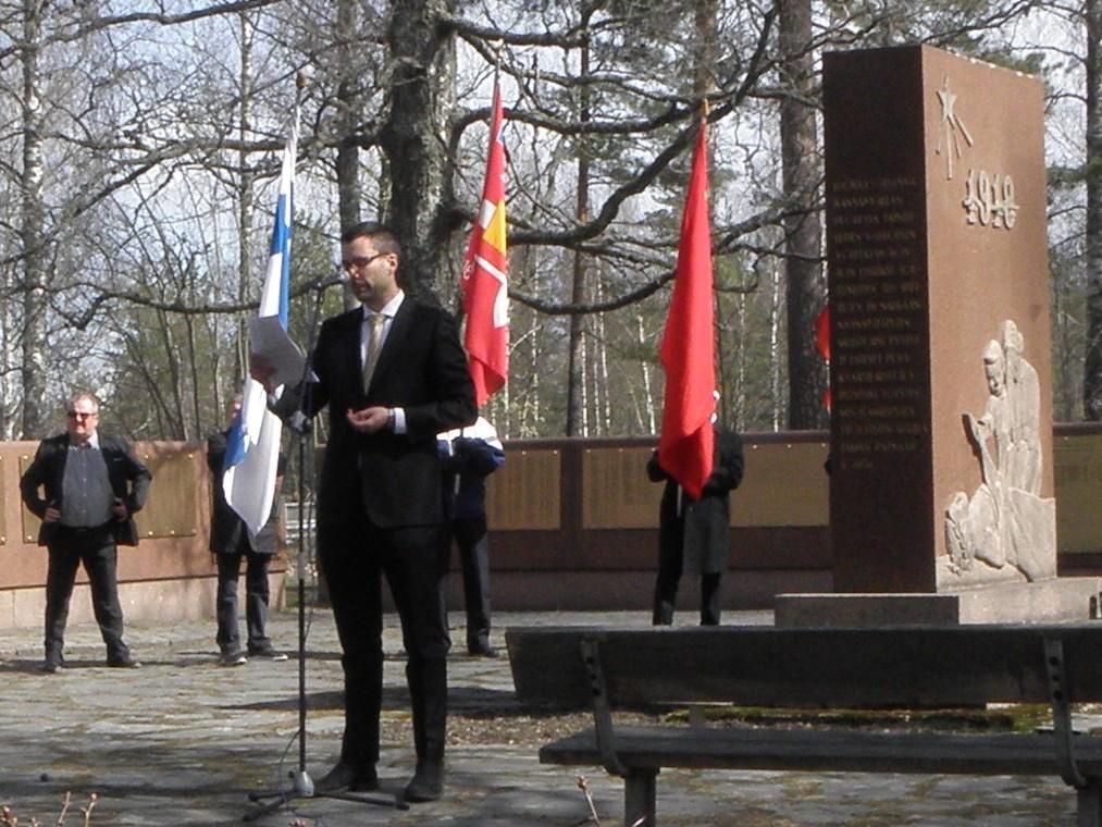 Kansanedustaja Johan Kvarnström puhuu muistomerkillä klo 12.00