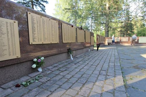 Nimilaattojen päivitys ja kunnostus. Yhdistys oli kolmena tilaisuuttaa edeltäneenä vuotena tarkastanut vankileirillä kuolleitten henkilötietoja. Osoittautui että muistomerkin nimilaatoissa oli virheellisyyksiä joita olimme parhaamme mukaan korjanneet. Virheellisyyksiä korjattiin samalla kun laattojen luettavuus parannettiin ja tehtiin muu kunnostus. Laatat uudelleen kaiverrettiin talven aikana ja ne voitiin asentaa paikoilleen taas sopivasti vapuksi.