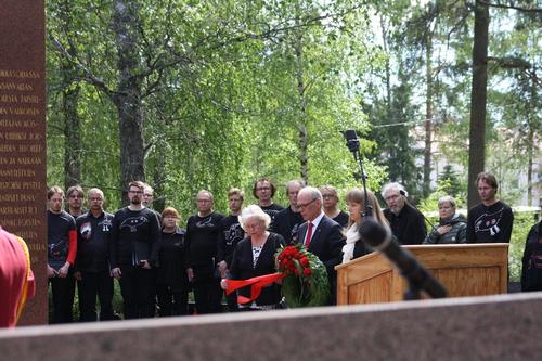 VÄGEN TILL EKENÄS 100-ÅRS MINNESEVENEMANGET hölls lördagen 9. juni 2018 vid Röda fångars minnesmärke i Dragsvik. Evenemanget blev både rörande och känslosamt. Evenemangets minnestalare var ärkebiskop emeritus Kari Mäkinen. Blomsterhyllningarnas mängd överraskade till och med arrangörerna. Blomsterhyllningar lämnades både av samfund och privatpersoner. Vid evenemanget utförde Koiton laulu kören ett körverk, ”Tie” (Vägen), komponerat av Tomas Takolander och av föreningen beställt speciellt för detta evenemang. Över 3 000 personer hade kommit för att hedra minnet av offren i fånglägret. Bland gästerna sågs bland andra president Tarja Halonen med make samt fru Tellervo Koivisto. I samband med minnesevenemanget avtäcktes också en platta till minnet av dem som vilar i okända gravar. Minnestexten har valts av föreningen i samarbete med Helena Ranta.