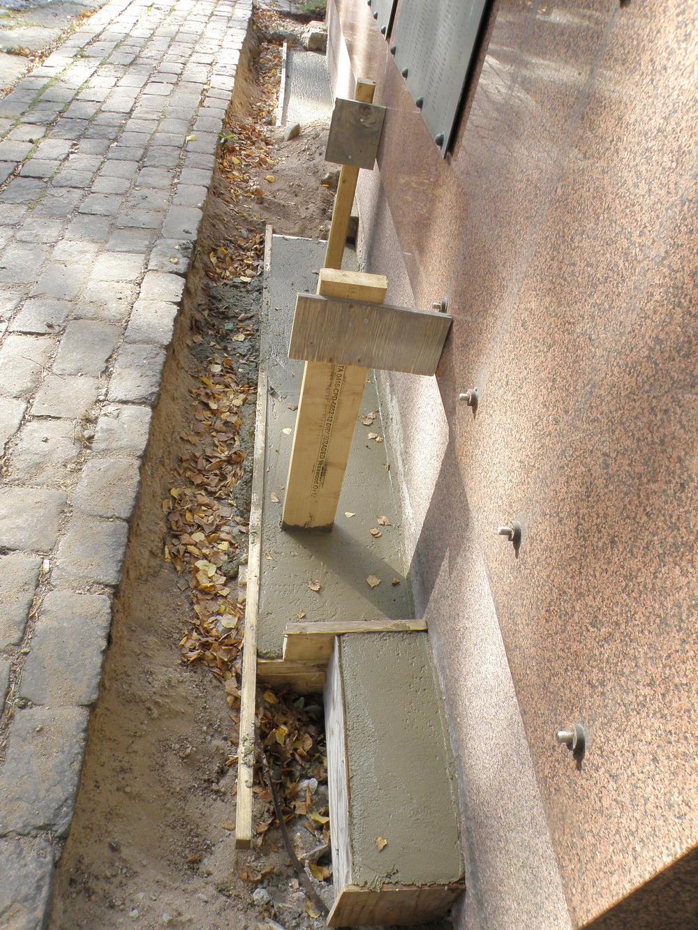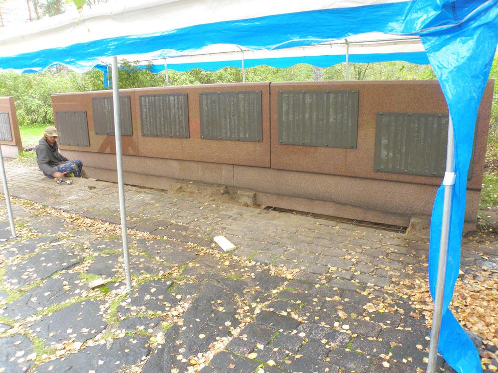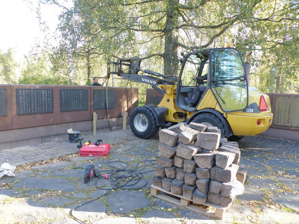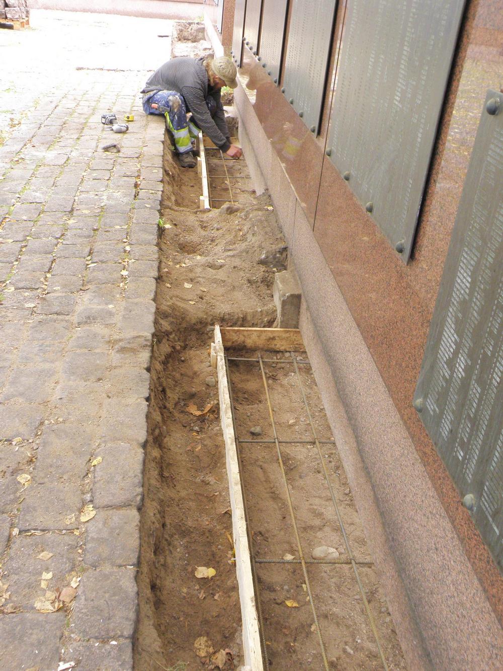 2013 märktes att sockeln till till granitväggen i minnesmärkets utvidgningsdel hade fått sprickor. Det var en följd av att marken hade satt sig vid linjegravarna. Därför var man tvungen att åtgärda de uppkomna skadorna. Arbetet som var både nödvändigt och krävande, krävande med tanke på att det var en gravplats, gjordes av en entrepenör som hade erfarenhet av liknande uppdrag åt församlingar. Arbetet tog knappt två veckor under den tiden var minnesmärket delvis avstängt.