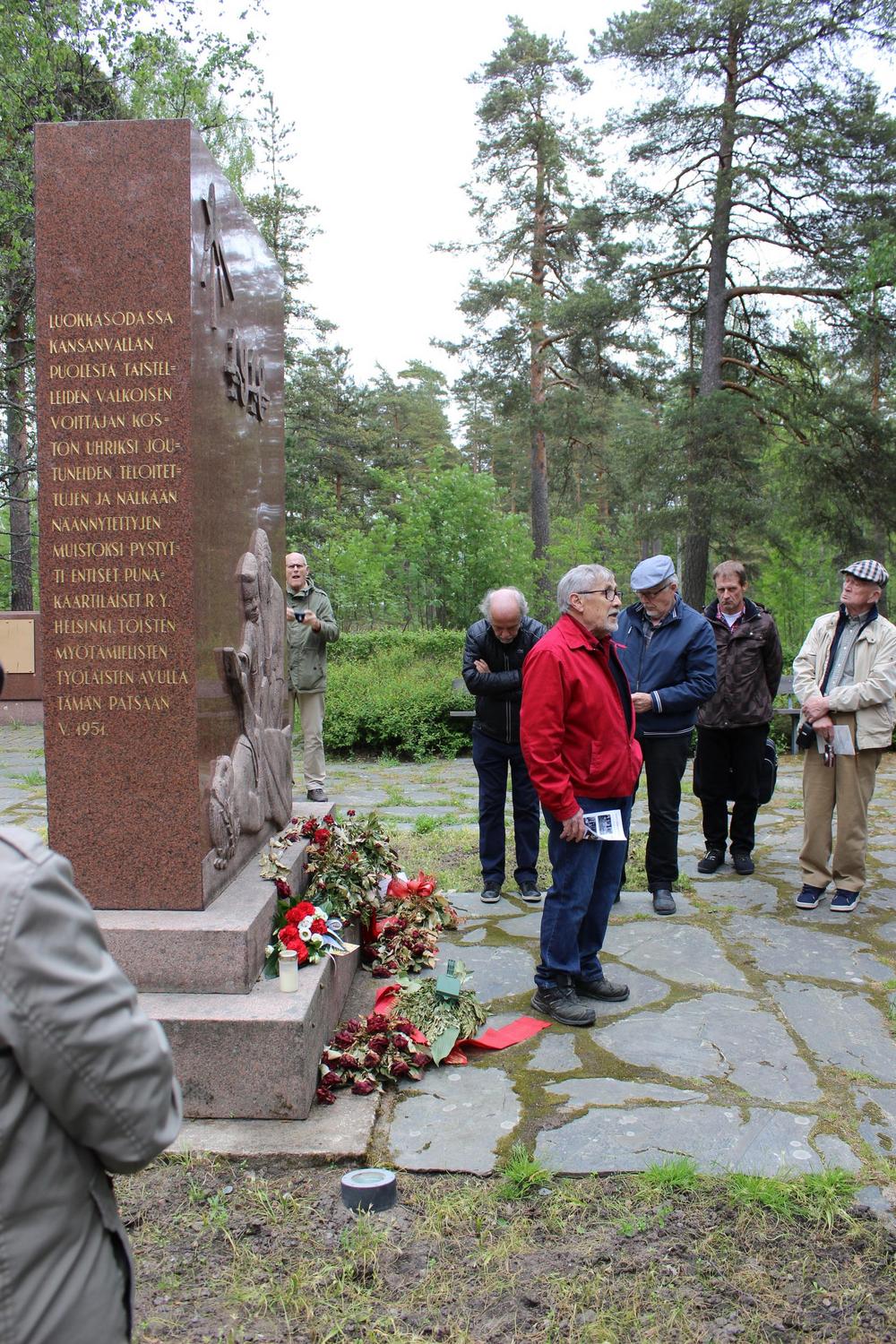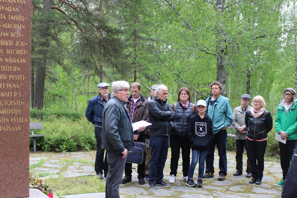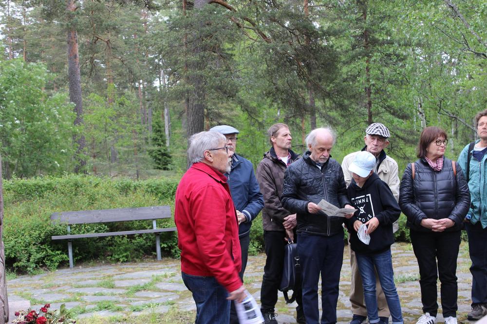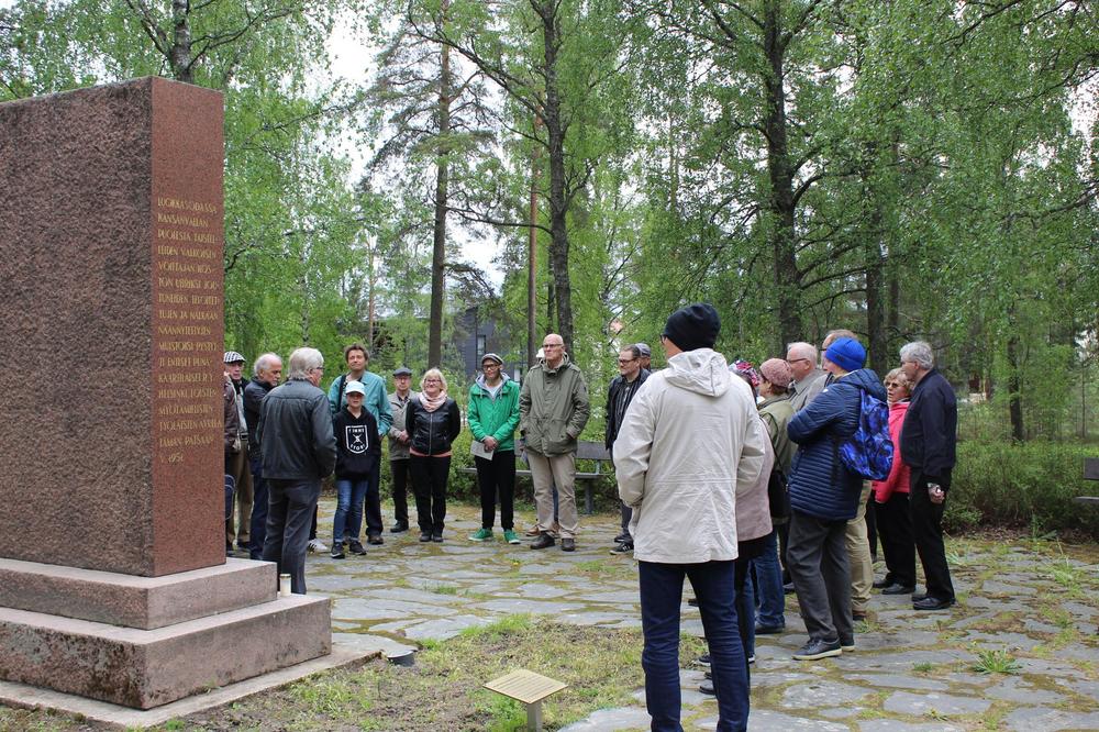 En busslast besökare från Mouhijärvi besökte minnesmärket 7.6.2019 Som guide fungerade Leena Ruusunen